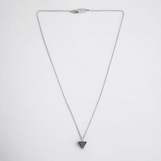 Elevate any outfit with our sterling silver triangle pendant, designed for both women and girls. This elegant pendant adds a touch of sophistication to any look, making it perfect for any occasion. Paired with a delicate chain, it's the perfect addition to any jewelry collection.