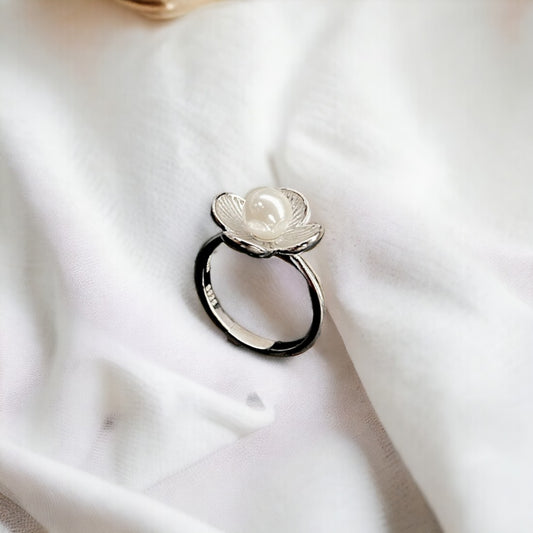 Indulge in elegance and grace with our Pearl In Flower Ring. Delicately crafted for women and girls, this exquisite ring will elevate any outfit with its intricate floral design and shimmering pearl centerpiece. Embrace the beauty and sophistication of this luxurious accessory.