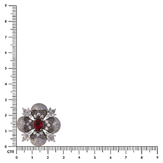 Sterling Silver Midnight Bloom Red stone Adjustable Cocktail ring for Women and Girls