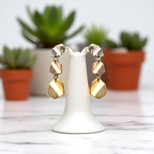 Add a touch of modern elegance to your jewelry collection with these Sterling Silver Hexagon Shape Dangle Earrings. Crafted from genuine 925 sterling silver, the geometric hexagon design offers a sleek, contemporary look that's both minimalist and eye-catching.