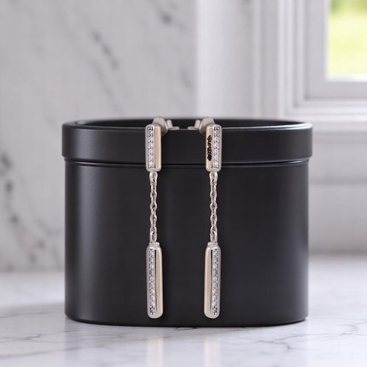 Sterling Silver Zircon Studded Chain drop Earrings For Women and Girls