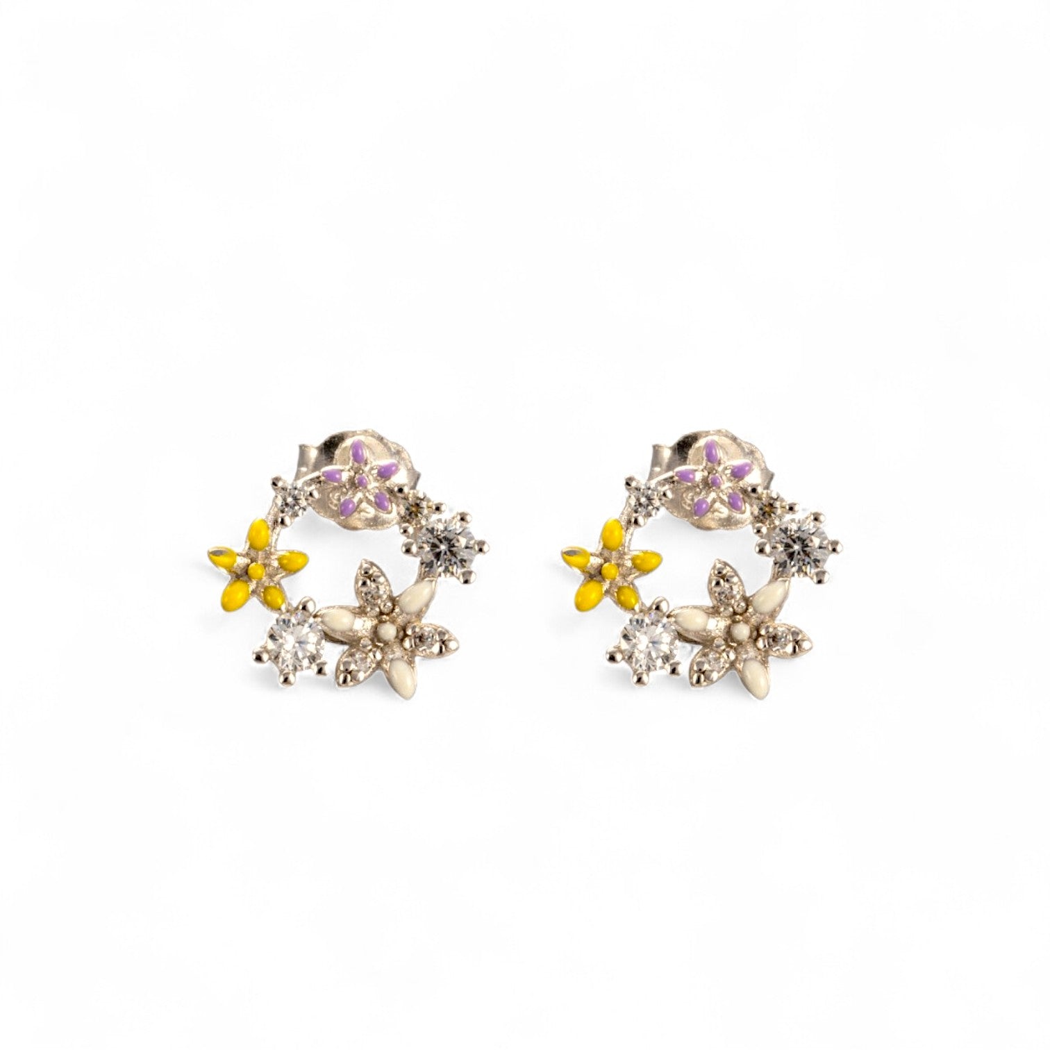Delicate and timeless, these Sterling Silver Floral Studded Earrings bring a graceful touch of nature-inspired beauty to any look. Crafted from genuine 925 sterling silver, each earring features a finely detailed floral design accented with sparkling stones that catch the light with every move.