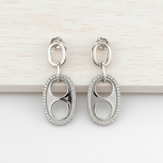 Sterling Silver Zircon Studded Oval Drop Earrings for Women and Girls