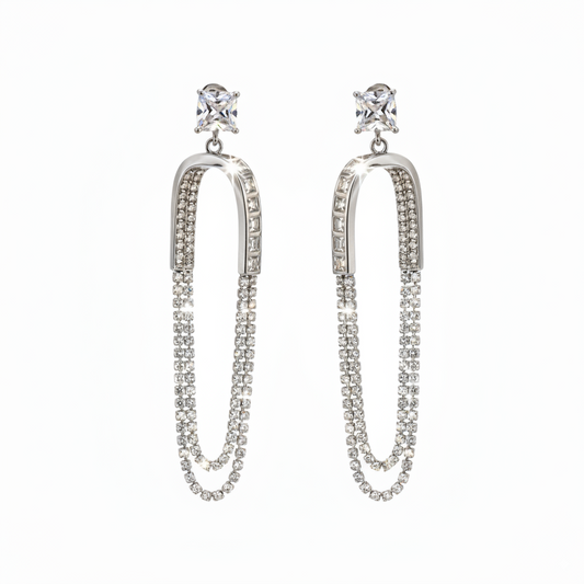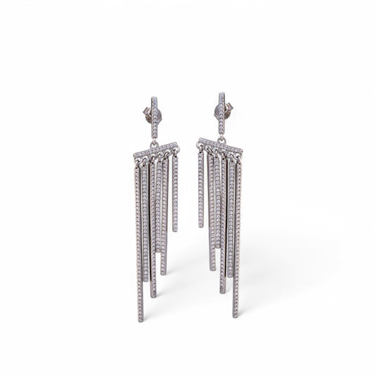 Sterling Silver Zircon Studded Chain drop Earrings For Women and Girls