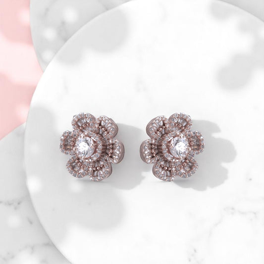 Sterling Silver Zircon Floral Stud Earrings for Women and Girls