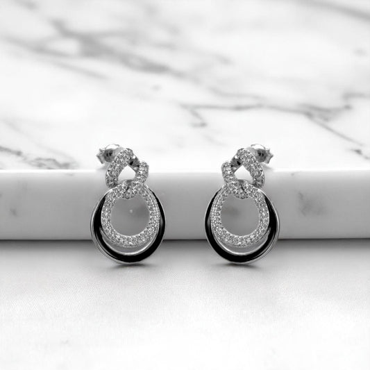 The studded embellishments enhance the earrings' sparkle, catching the light and adding an extra layer of brilliance. The combination of the delicate sterling silver and the shimmering studs makes these earrings perfect for both formal occasions and casual wear when you want to elevate your style.