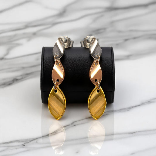 Elevate your jewelry collection with these stunning Sterling Silver Dual‑Tone Twisted Earrings. The elegant fusion of polished silver and gleaming gold (or rhodium) creates a sculptural, mixed‑metal statement. Lightweight yet gracefully bold, they're perfect for everyday chic or evening elegance. Hypoallergenic and durable, they arrive in a gift‑ready box—ideal for women and girls seeking contemporary yet timeless style.