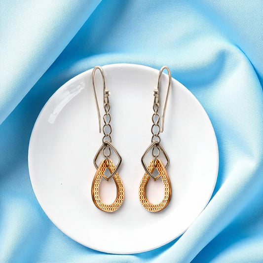 Sterling Silver Dual tone Twisted Earrings for Women and Girls
