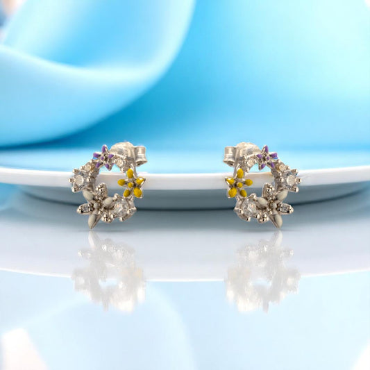 Sterling Silver Floral Studded Earrings for Women and Girls