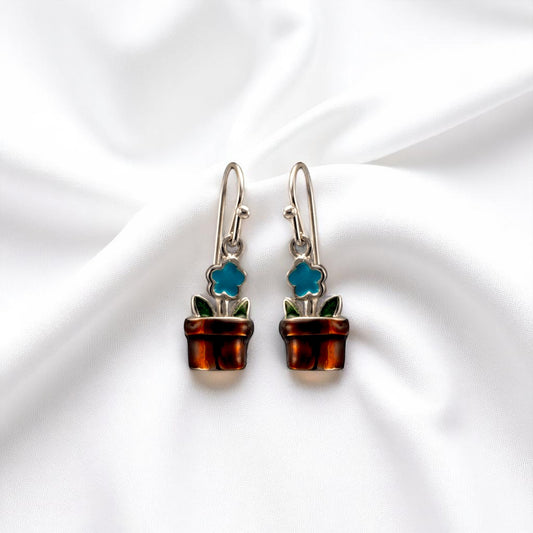Sterling Silver Flower Pot Earrings for Women and Girls