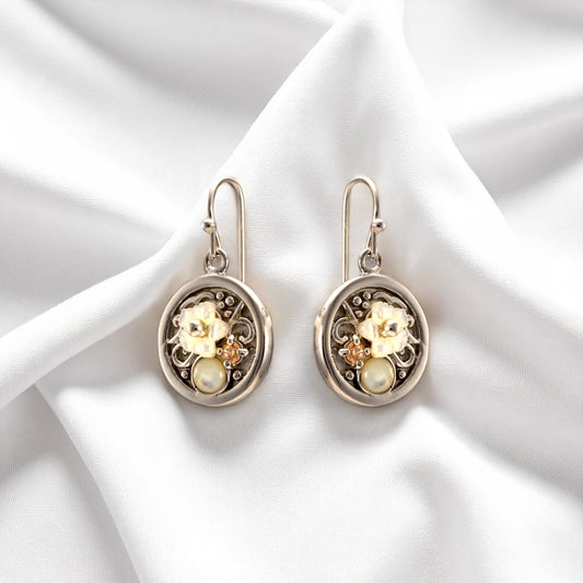 Sterling Silver Dual tone Flower Design Earrings for Women and Girls