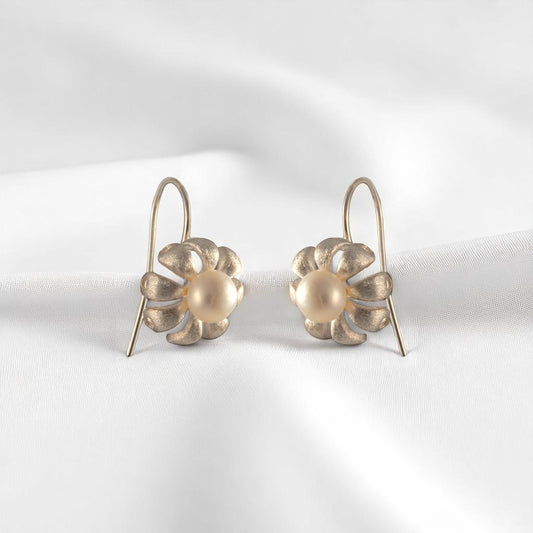 Sterling Silver Pearl Floral Motif Earrings for Women and Girls