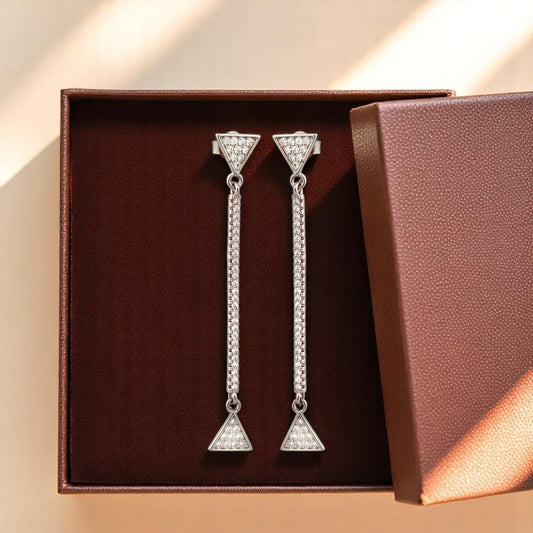 Sterling Silver Triangle Studded Drop Earring For Women and Girls