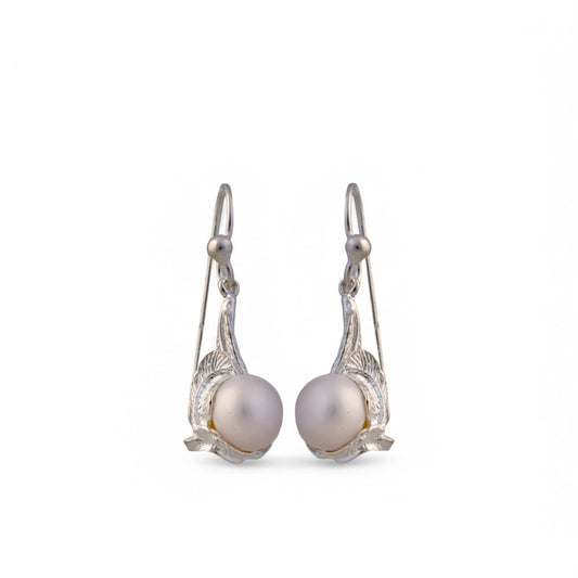 Sterling Silver Leafy Pearl Earrings For Women and Girls