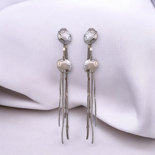 Sterling Silver Round Chain Drop Earrings For Women and Girls