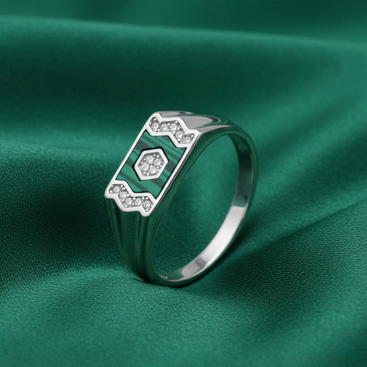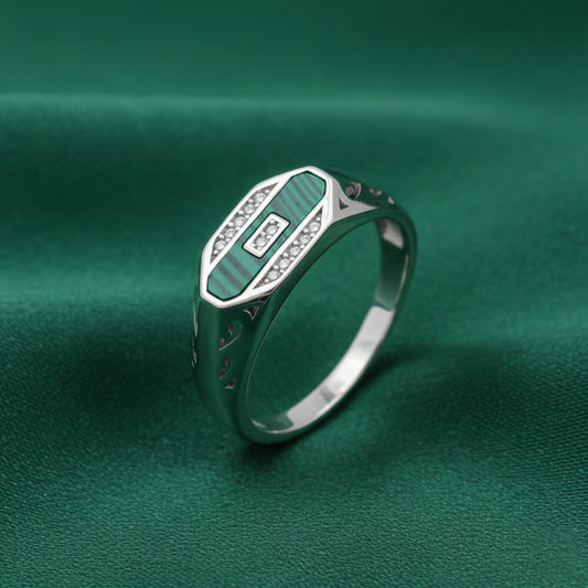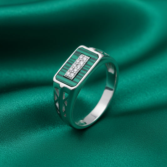 Crafted in 92.5 sterling silver, the EterKnight Verdant Linear ring features a striking green inlay framed by a clean linear pavé strip, creating a sharp contrast that feels modern and confident. Finished for long-lasting shine, it’s designed for comfortable daily wear while standing out effortlessly at parties and special occasions.
