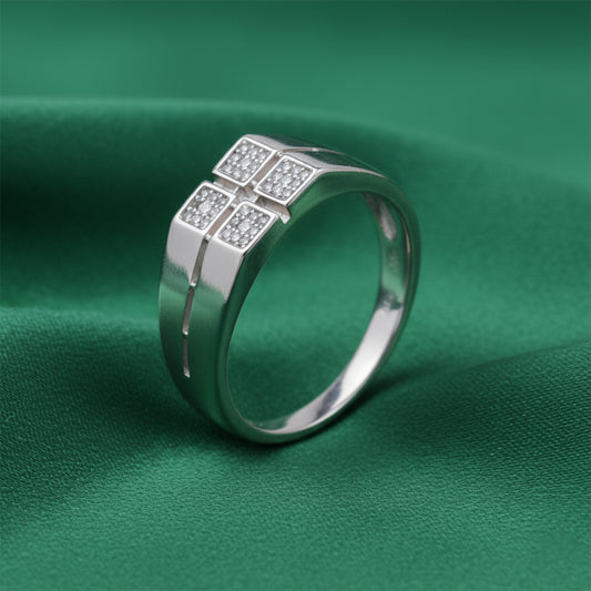 The EterKnight Quadrant ring is crafted in 92.5 sterling silver, defined by a bold four-panel design accented with finely set stones for a balanced, architectural look. The clean lines and polished finish deliver long-lasting shine with a comfortable fit for everyday wear.