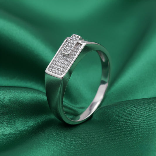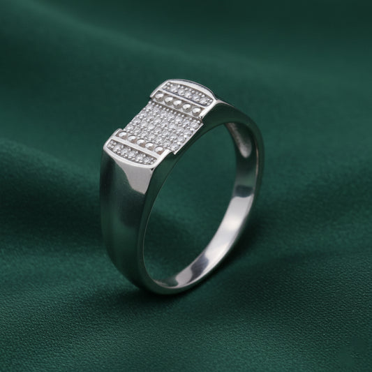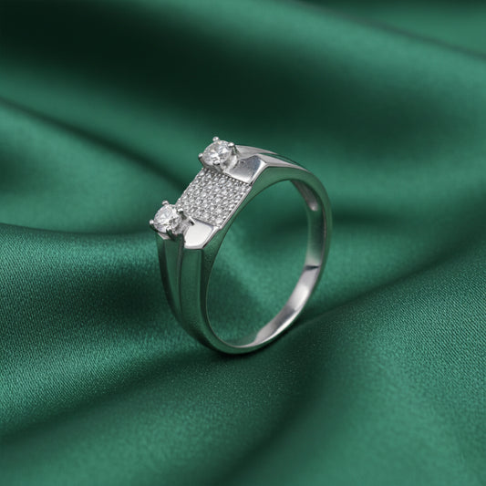 Crafted in 92.5 sterling silver, the EterKnight Parallel ring features a sharp geometric form highlighted with twin pavé-set panels that add subtle brilliance without overpowering the design. The polished finish ensures long-lasting shine, making it a refined choice for everyday wear as well as formal and party occasions.