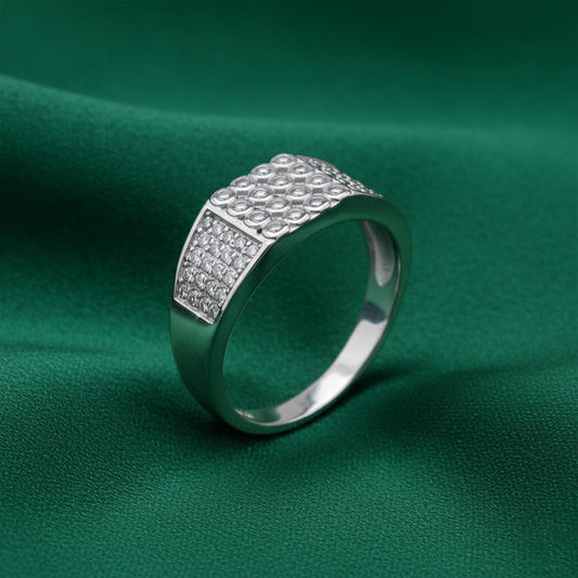 The EterKnight Matrix ring is crafted in 92.5 sterling silver, featuring a structured surface with grid-inspired stone detailing that adds depth and character. Its balanced design blends texture with polish, creating a refined statement that feels modern and confident. Finished for long-lasting shine, it’s comfortable enough for daily wear and sharp enough for formal and evening occasions.