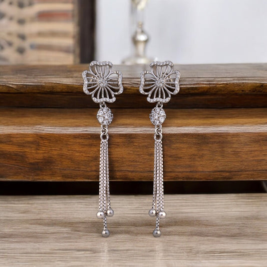 Sterling Silver Floral Studded Chain drop Earrings For Women and Girls