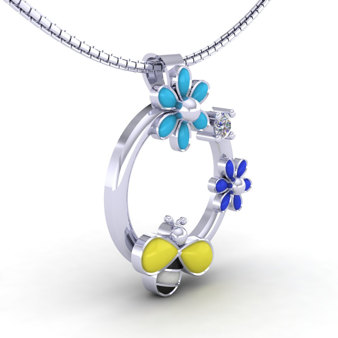 Sterling Silver Bee Floral chain pendant For Women and Girls